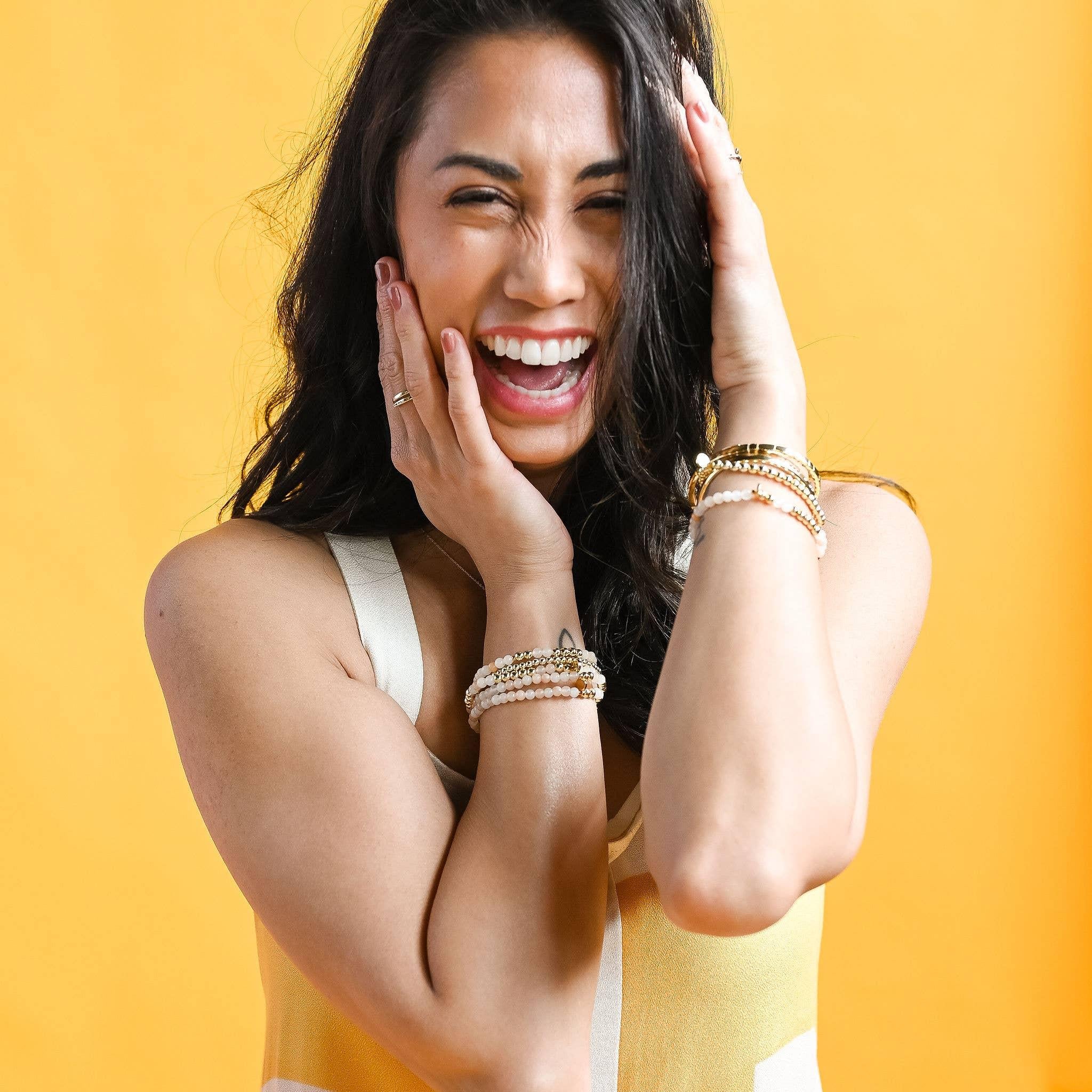 Each piece is handcrafted by the woman it helps to employ. Through wearing Ethic Goods, you become a meaningful part of her story, and give freedom to women around the world. Details * Length - 7.75" | Stretches to 8.5" * Handmade with love in Thailand * Made with semi-precious stones, hematite, glass beads, and elastic.