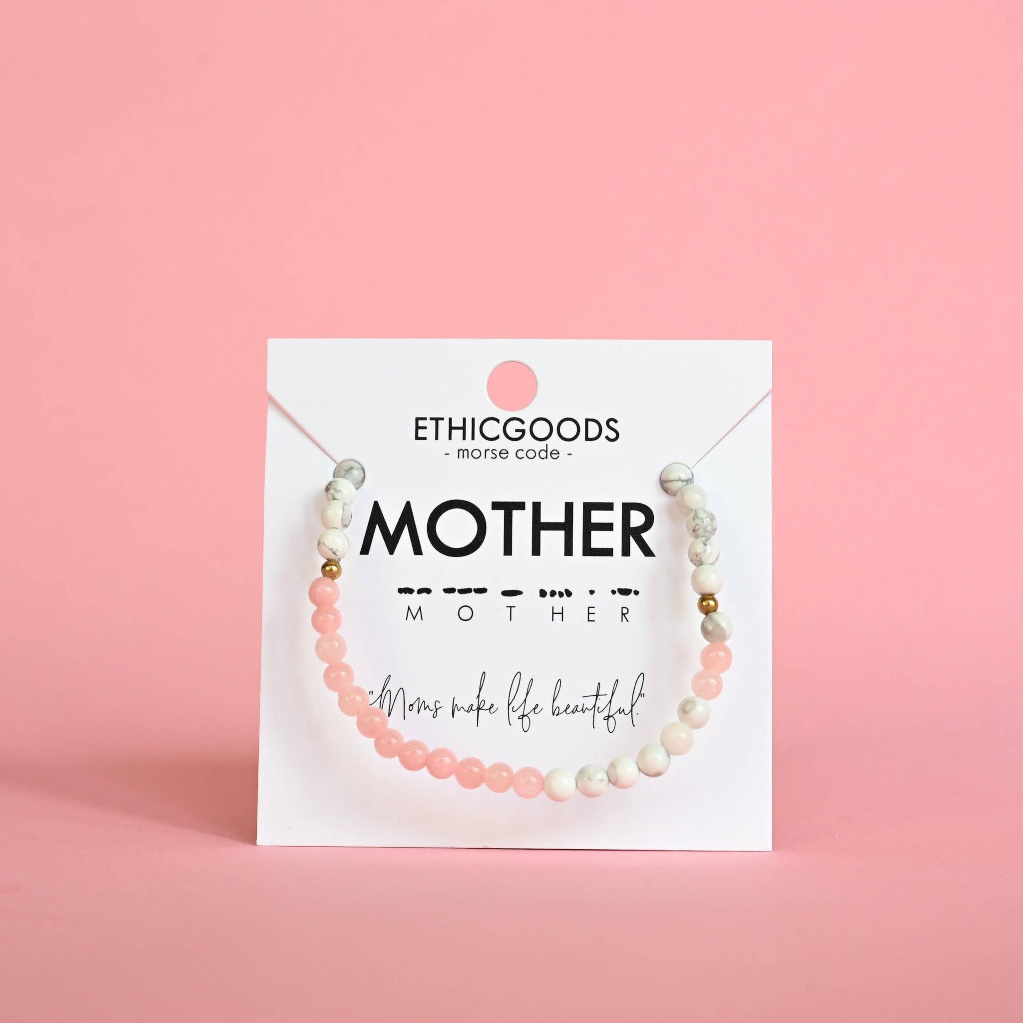 Mother Mom's make life beautiful. Each piece of this bracelet is made by a mom in Thailand raising the next generation of kiddos to have bright, hope-filled futures! This bracelet looks great alone or stacked with your other favorite Morse Code or stone stacking bracelets!