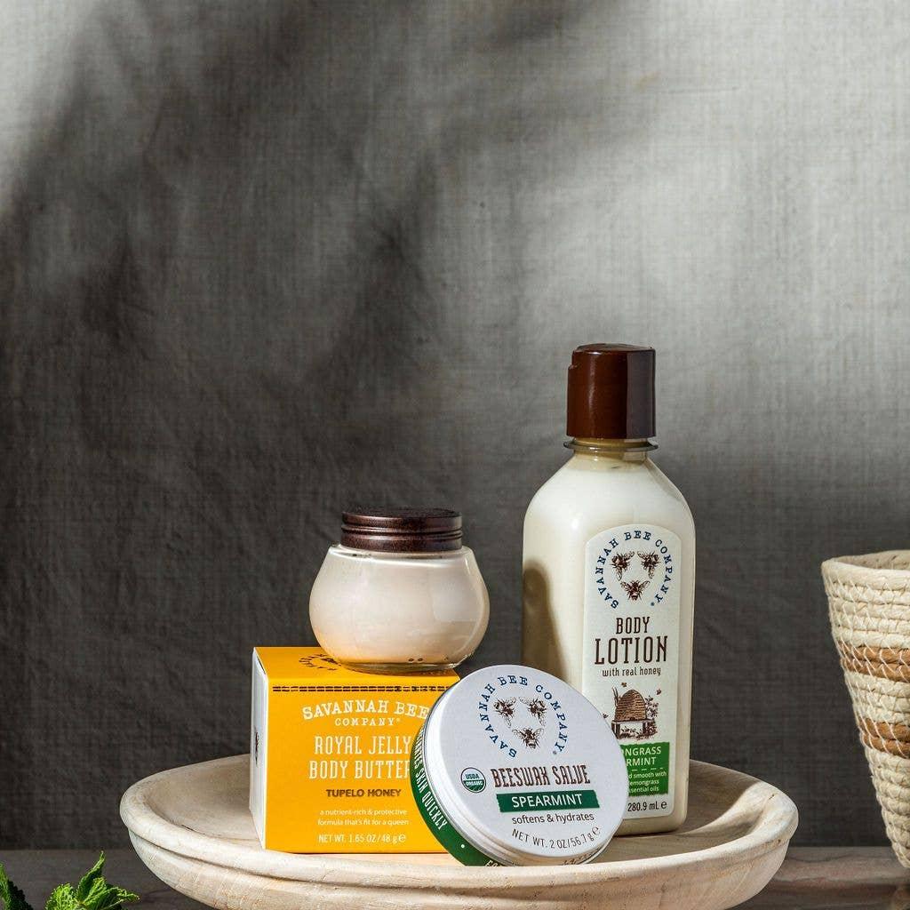 Super-rich, luxurious moisture fit for a queen! Combining royal jelly and other hive treasures with the crisp citrus and calming vanilla scent of Tupelo Honey, our signature formula body butter delivers deep nourishment and antioxidants to keep skin glowing and soft.