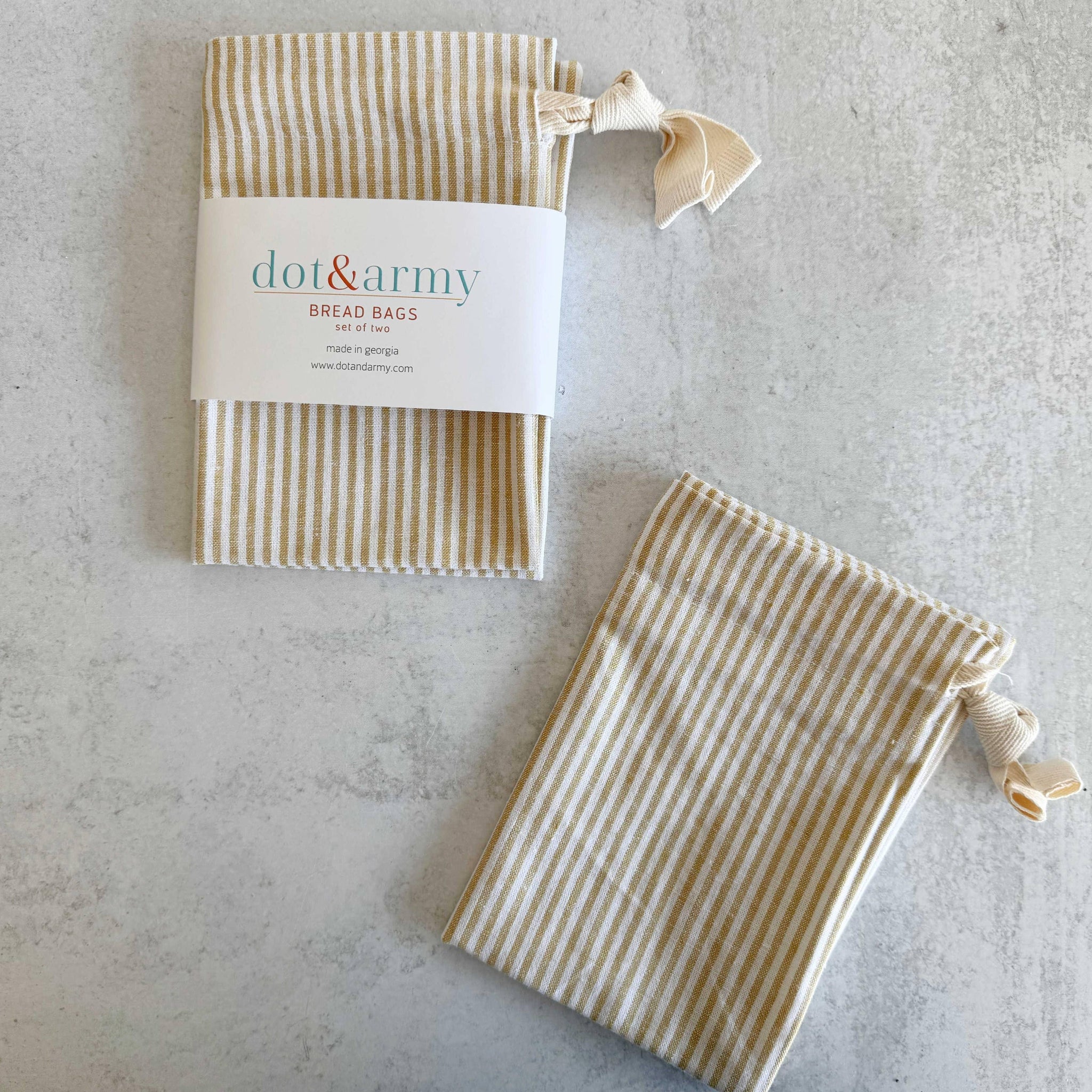 New! Linen blend bread bags in a honey stripe linen blend. Who doesn't like homemade bread? Even better when you can store it in our linen blend bread bags.