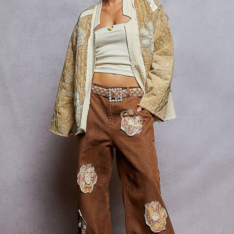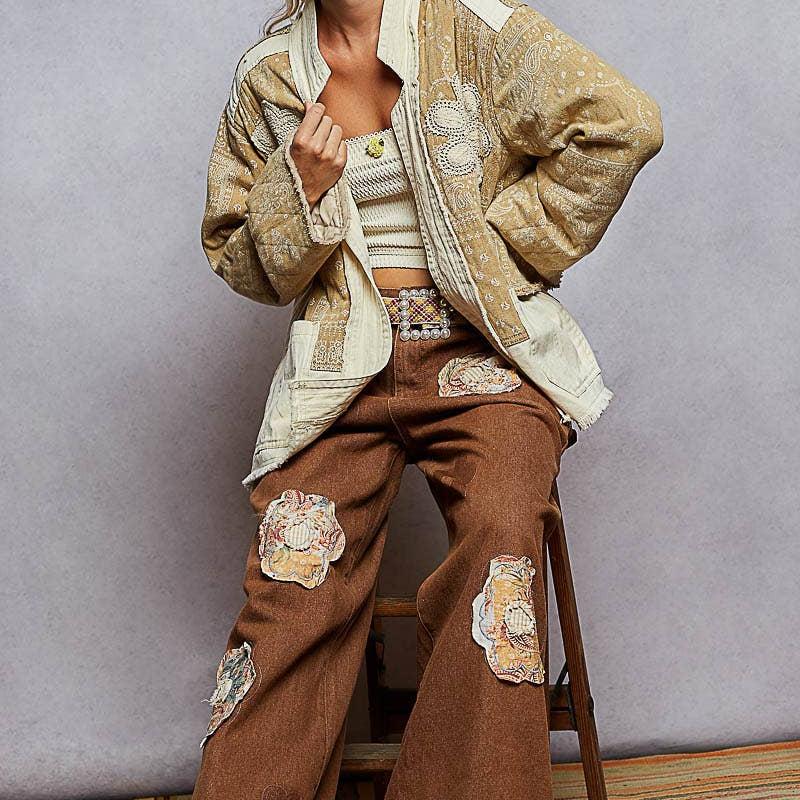 Paisley Pattern Patch Jacket: Natural
