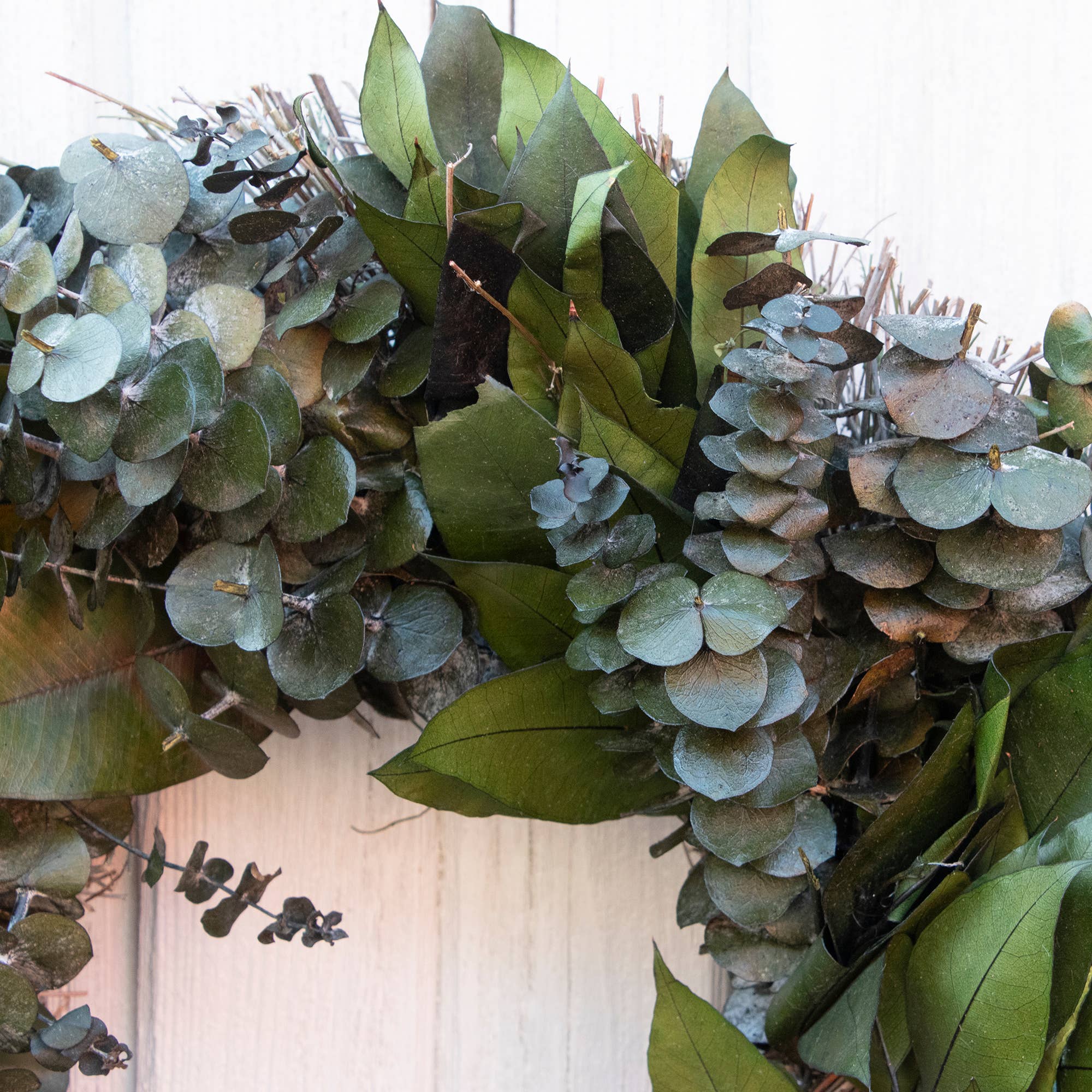 - Please note that our wreaths are handmade of natural materials that can be damaged if exposed to rain, snow, or heavy wind. We recommend keeping our wreaths inside or on a covered porch to protect the wreath.